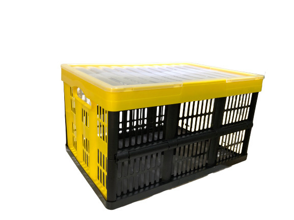 Yellow Color Folding Plastic Storage Crate Organizer Stackable For Transportation Images |